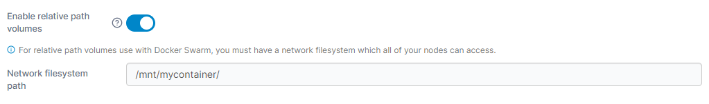 On Docker Swarm environments, specify the path at which you want your files to be created in the Network filesystem path field.