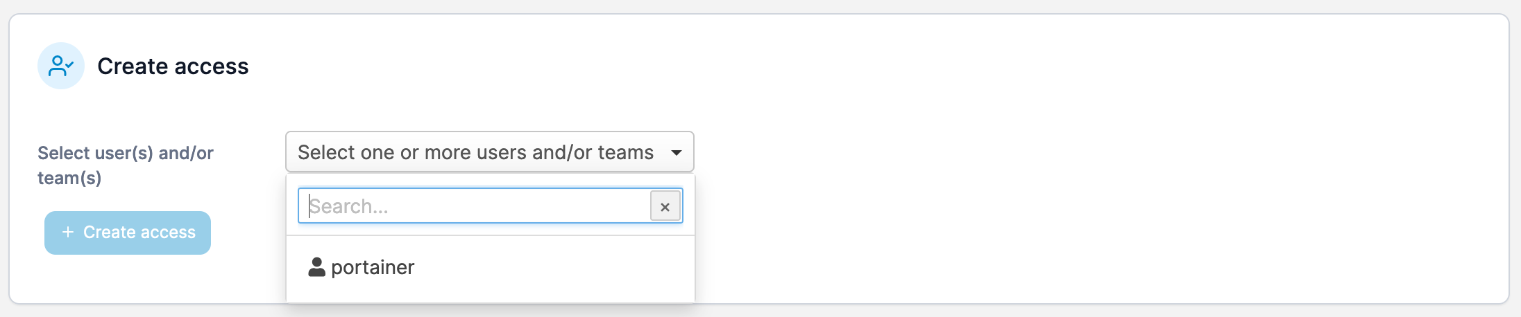 From the dropdown, select the users or teams that you would like to have access then click Create access.