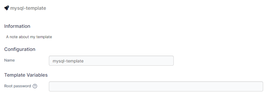Variables are identified in stacks with `{{ }}`. For example, the following stack provides a `MYSQL_PASSWORD` variable: