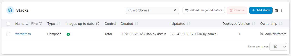 Click Deploy the stack then wait for the deployment to finish. If the deployment is successful, the new stack will appear in the list. Select it to view the deployment details.