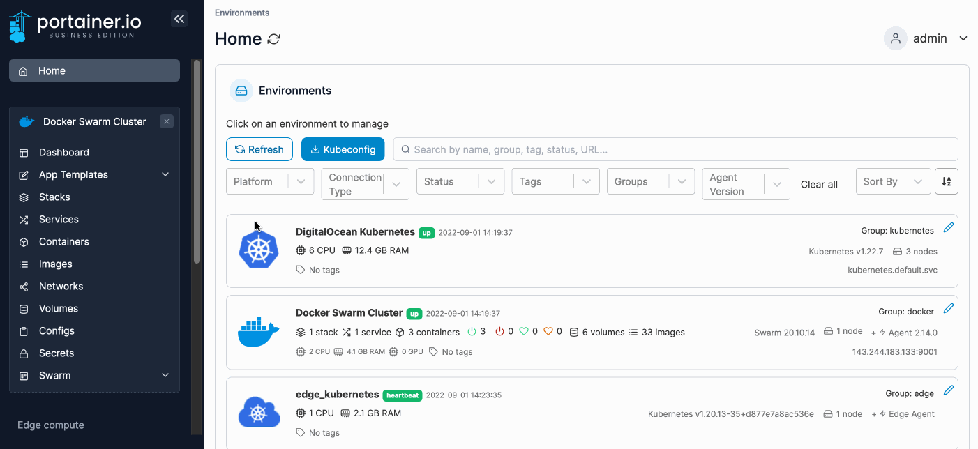 This feature is only available when running Docker Swarm or the Portainer Agent on the environment.