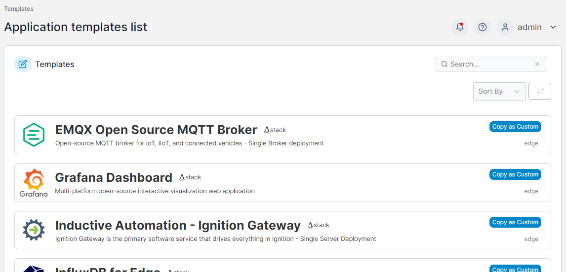 This section lists the application templates that are available to be deployed on your Edge devices.