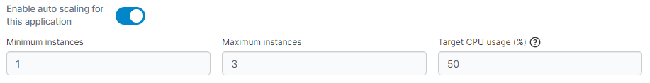 Enter the target CPU percentage for your application. The autoscaler will ensure that enough instances are running to maintain an average CPU usage of this value across all instances.
