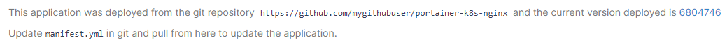 If the application was deployed from a Git repository you can redeploy it from the repository if needed. You will see the repository URL that the application was deployed from, the current version deployed, and the file used for the deployment.