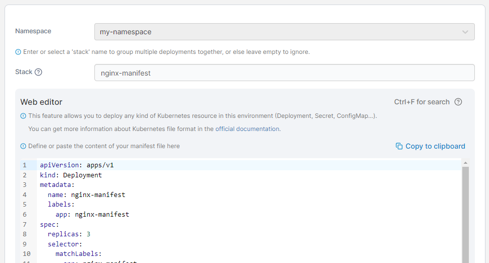 If the application was deployed from the Web Editor, you will be given the ability to edit the manifest manually.