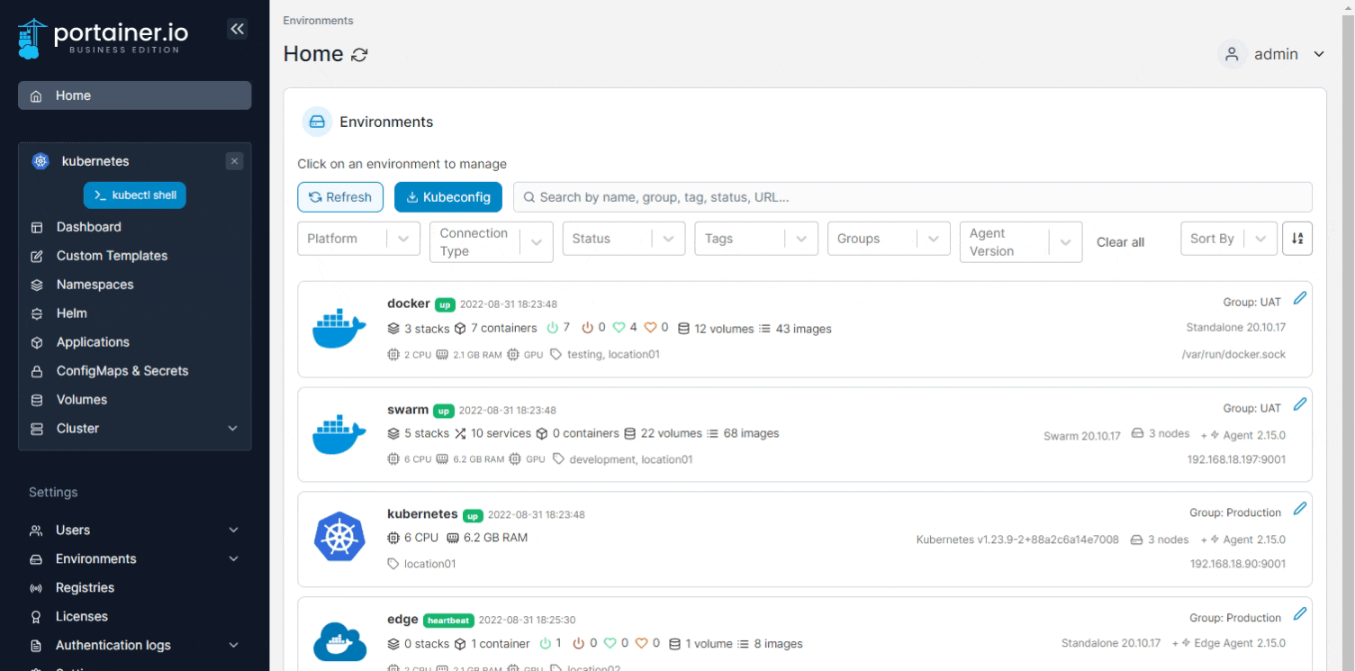 You can make changes to your environment's Kubernetes configuration by selecting Cluster from the menu then selecting Setup.