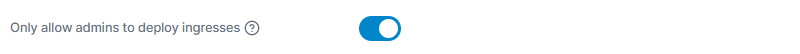 Enabling this option restricts the deployment of ingresses to cluster administrators only, preventing standard users from creating new ingresses.