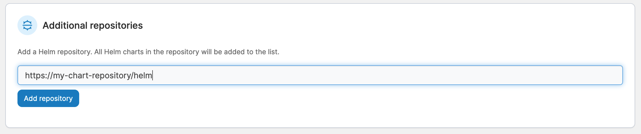 You can change the pre-configured Helm repository if required. If you do not have a global Helm repository configured, a warning will be displayed on this page.