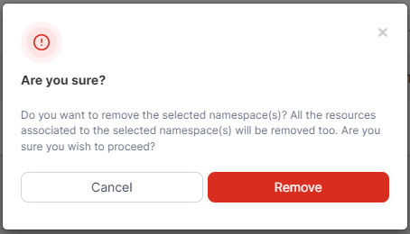 <figure><img src="https://content.gitbook.com/content/xdTQRpMuktD2l0URtOJO/blobs/Bi3YD5oEizkjso2Szw80/2.15-k8s-namespaces-remove-confirm.png" alt=""><figcaption></figcaption></figure>